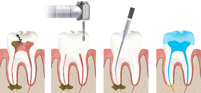 Root canal therapy is needed when the nerve of a tooth is affected by decay or infection. In order to save the tooth, the pulp (the living tissue inside the tooth), nerves, bacteria, and any decay are removed and the resulting space is filled with special, medicated, dental materials, which restore the tooth to its full function.
